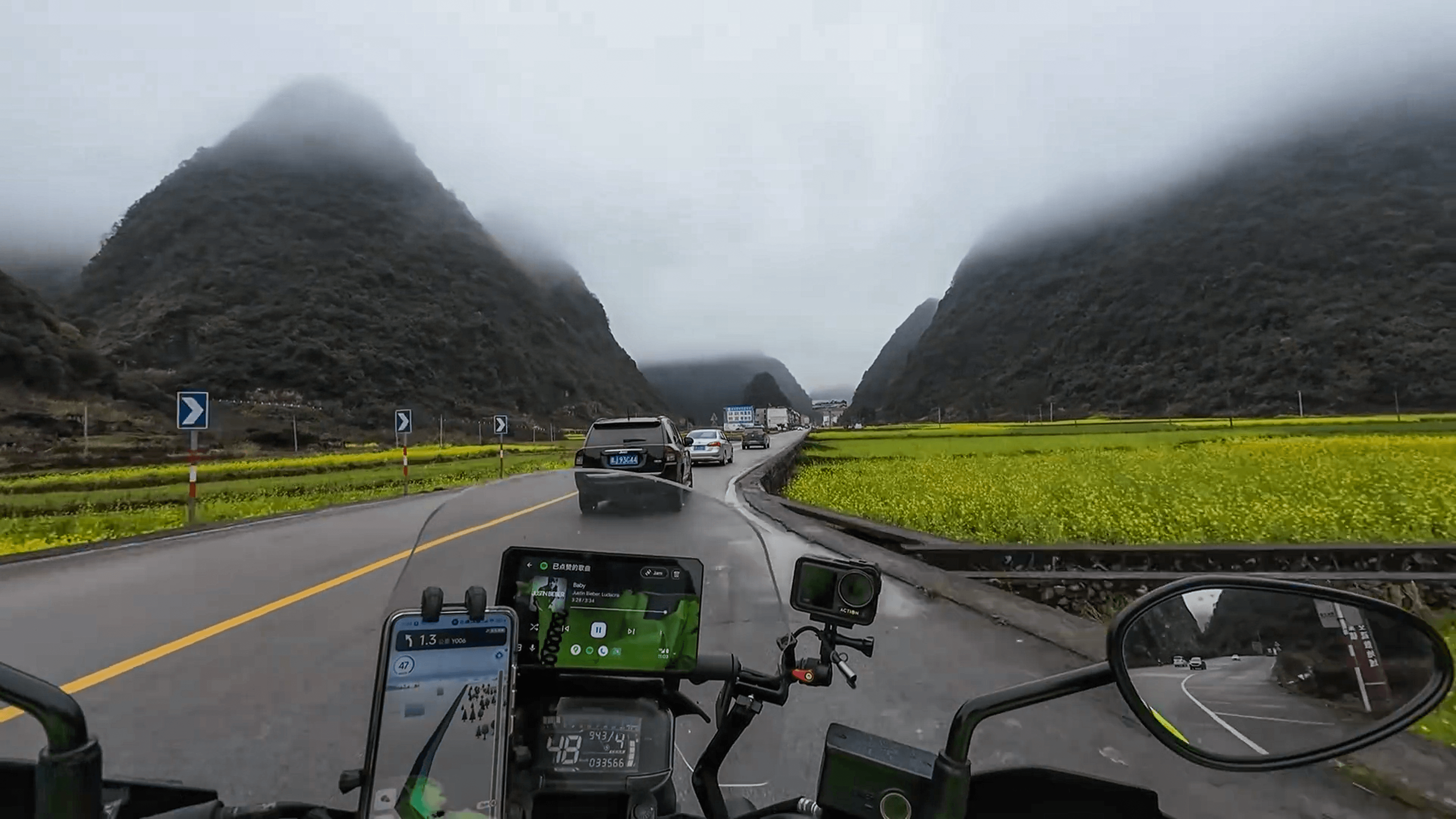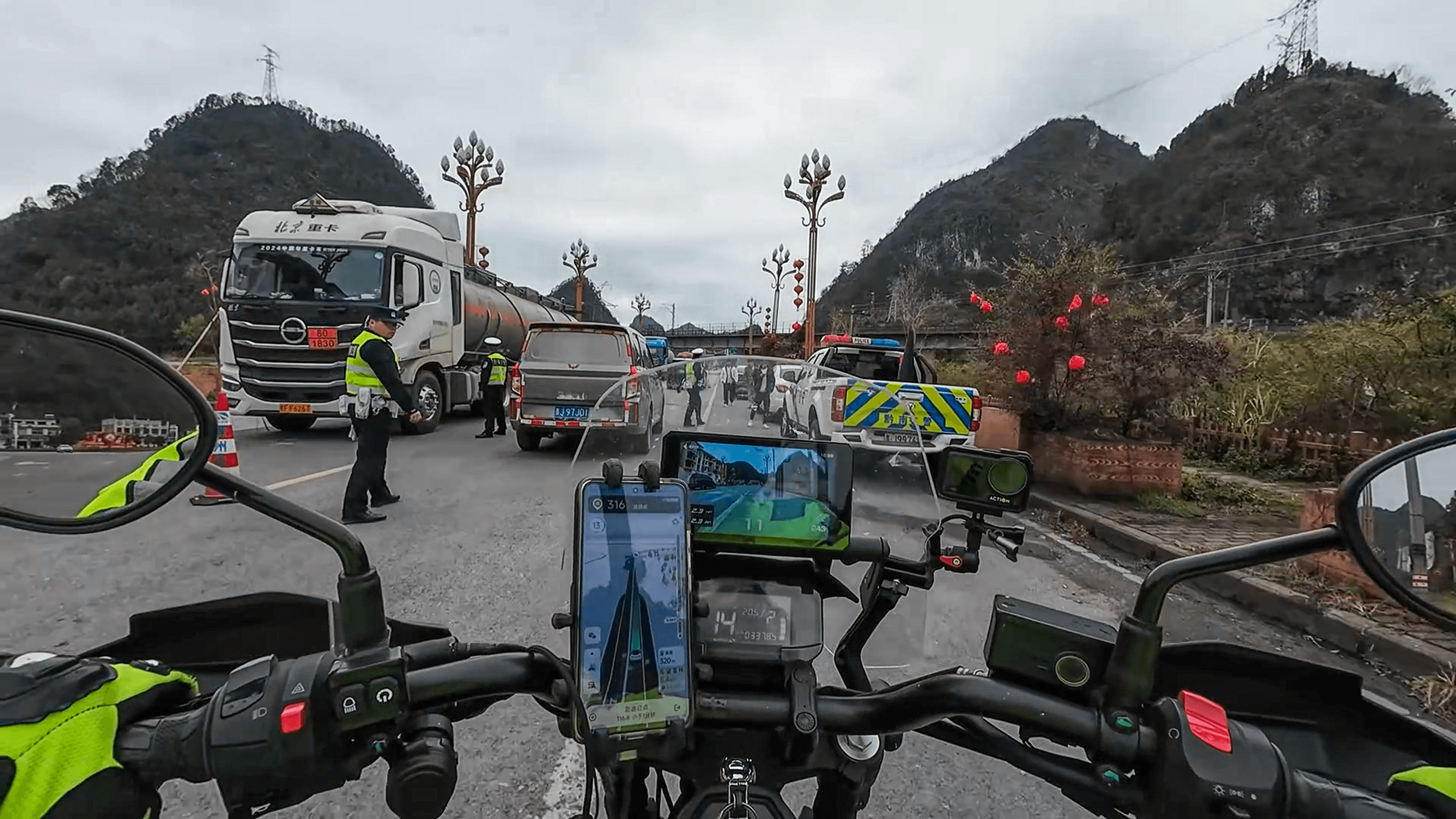 遇到前方堵车或者事故时,摩托车可以走应急车道。